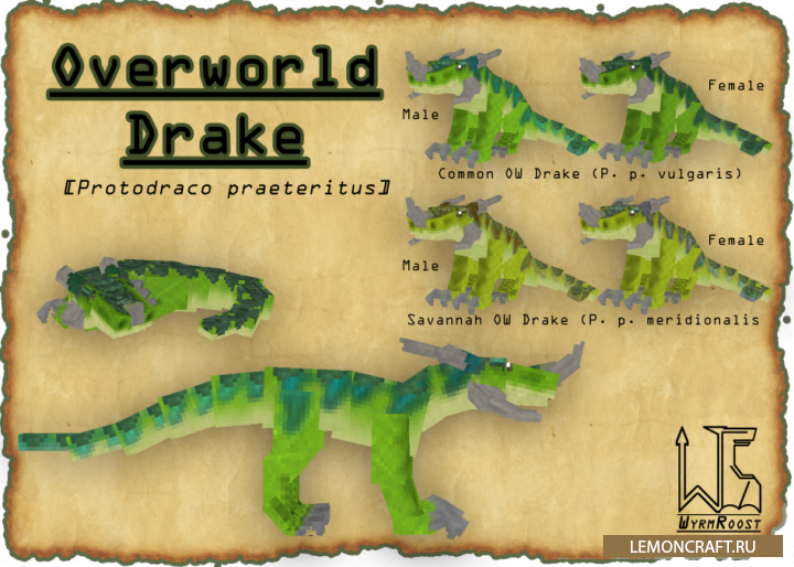 Мод на драконов Wyrmroost разнообразит мир майнкрафта древними существами, а именно драконами. Автор мода только начал разработку данной модификации и планирует развивать мод в дальнейшем. В игре появятся новые драконы и несколько предметов, которые помогут вам выжить в этой интересной игре.